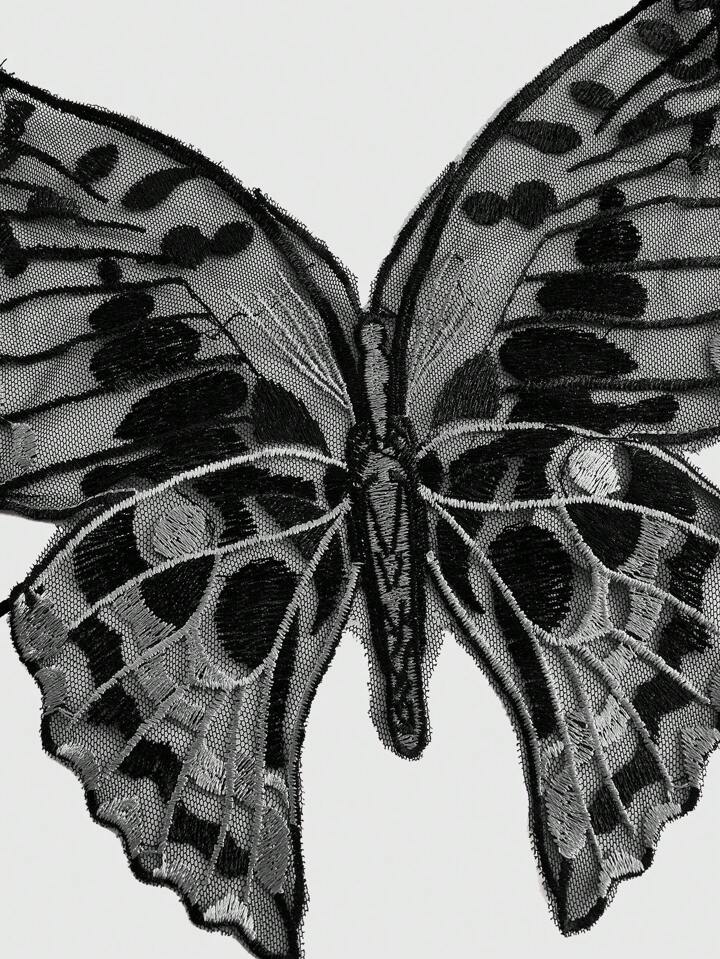 Goth طقم ملابس داخلية فراشة مزين شبكة