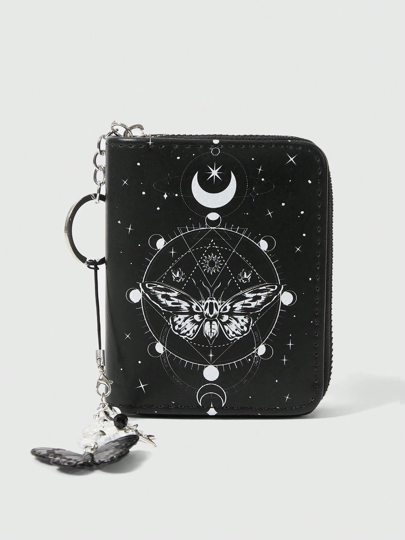 Goth محفظة قصيرة مزينة بالقمر والفراشة، اكسسوار للحمل اليومي