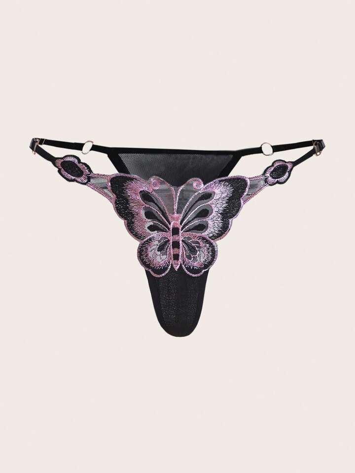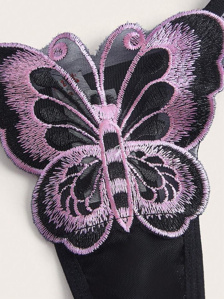 Goth سروال داخلي ثونغ جرافيك الفراشة شبكة