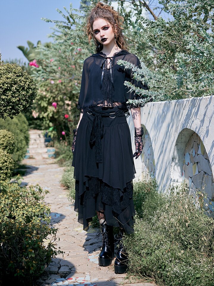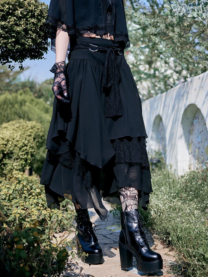 Goth تنورة دانتيل متباين اللون غير متساوي او غير متماثل