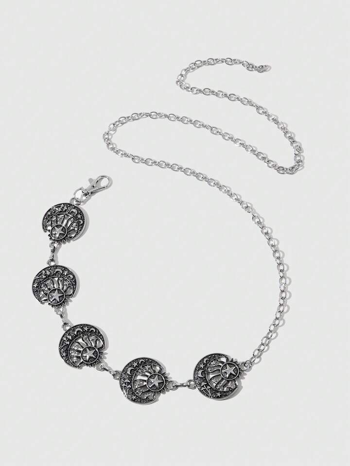 Goth سلسلة سروال وسلسلة خصر نسائية بطبقتين مزينة بنجمة وقمر