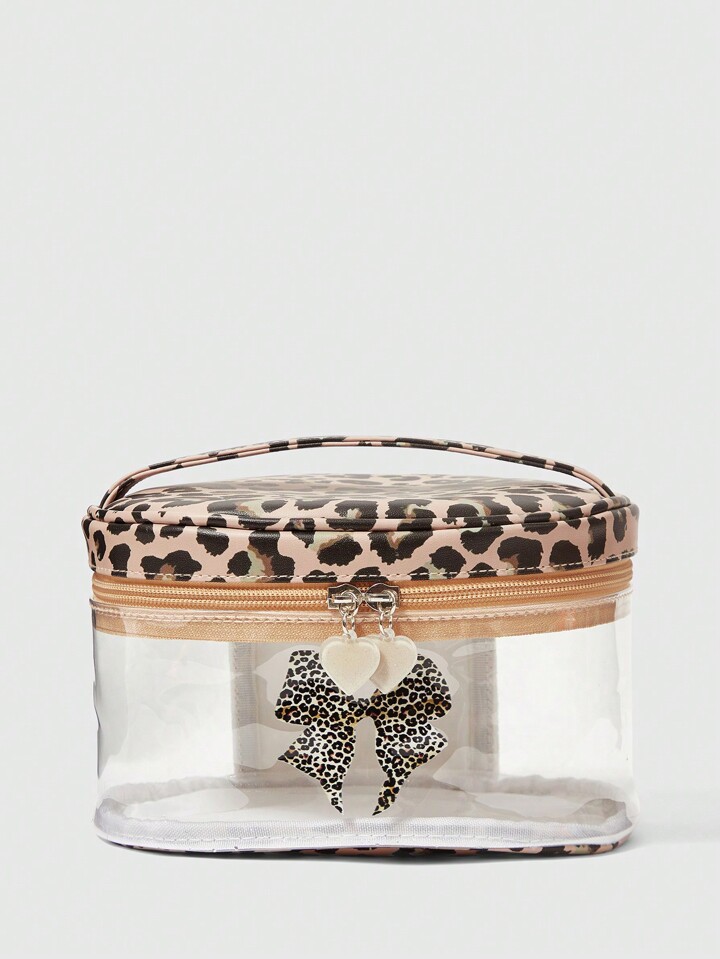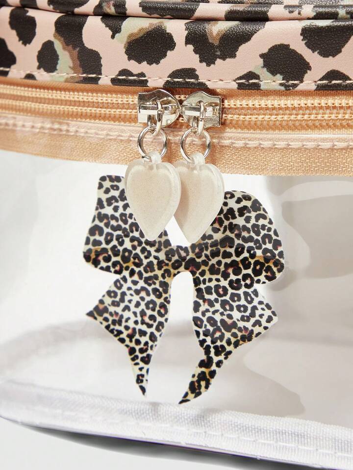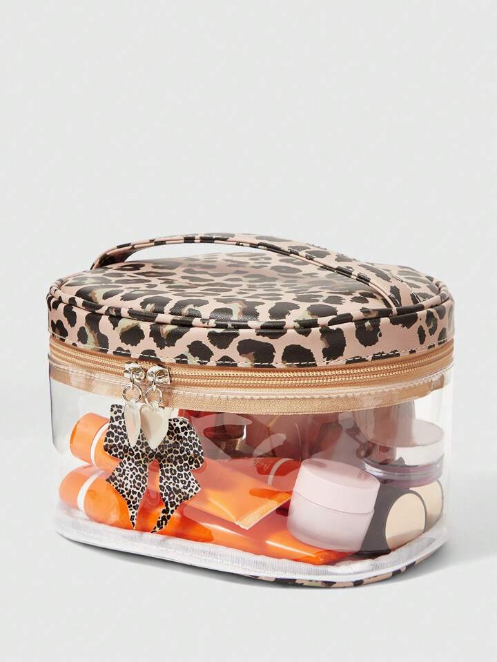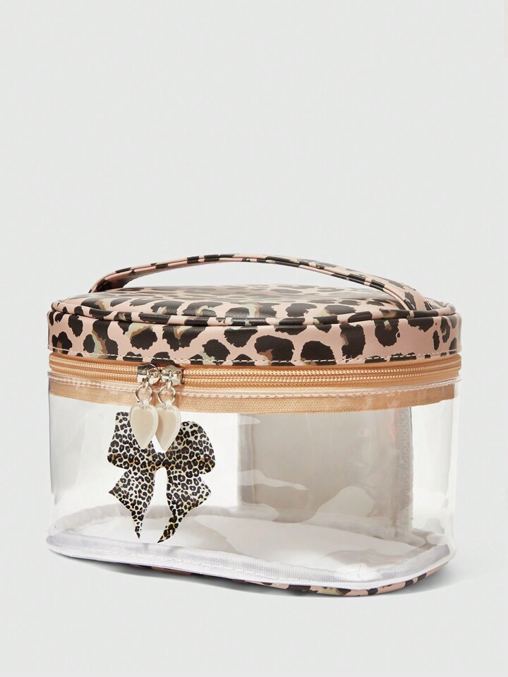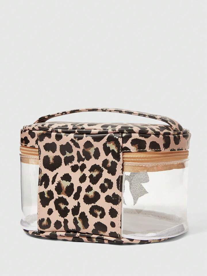 Goth حقيبة مستحضرات تجميل شفافة ذات سعة كبيرة ، بطبعة نمر عصرية وفيونكة بحجم كبير للنساء ، 401422
