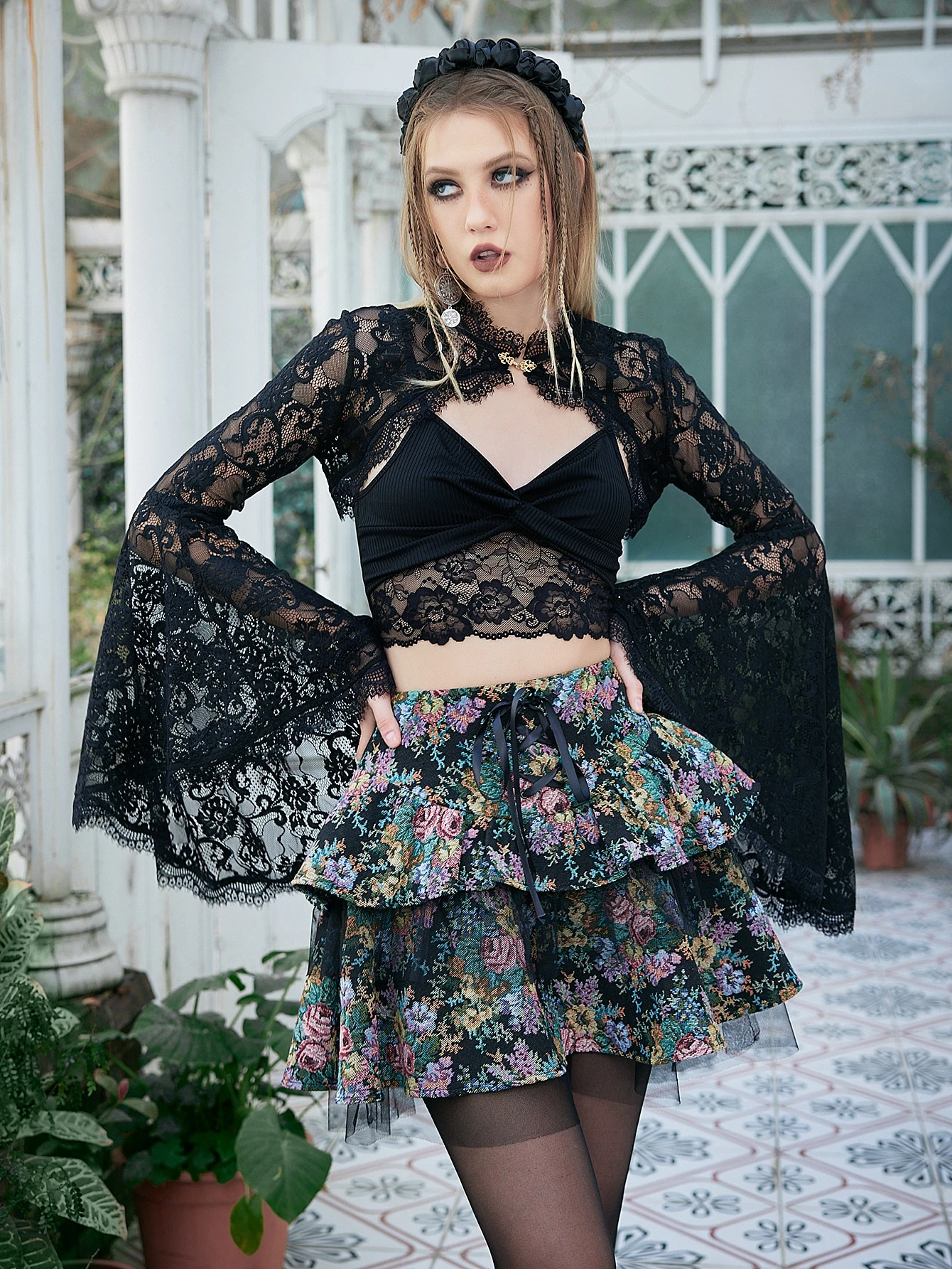 Goth لباس علوي اكمام منتفضة قصير دانتيل بدون حمالة صدر