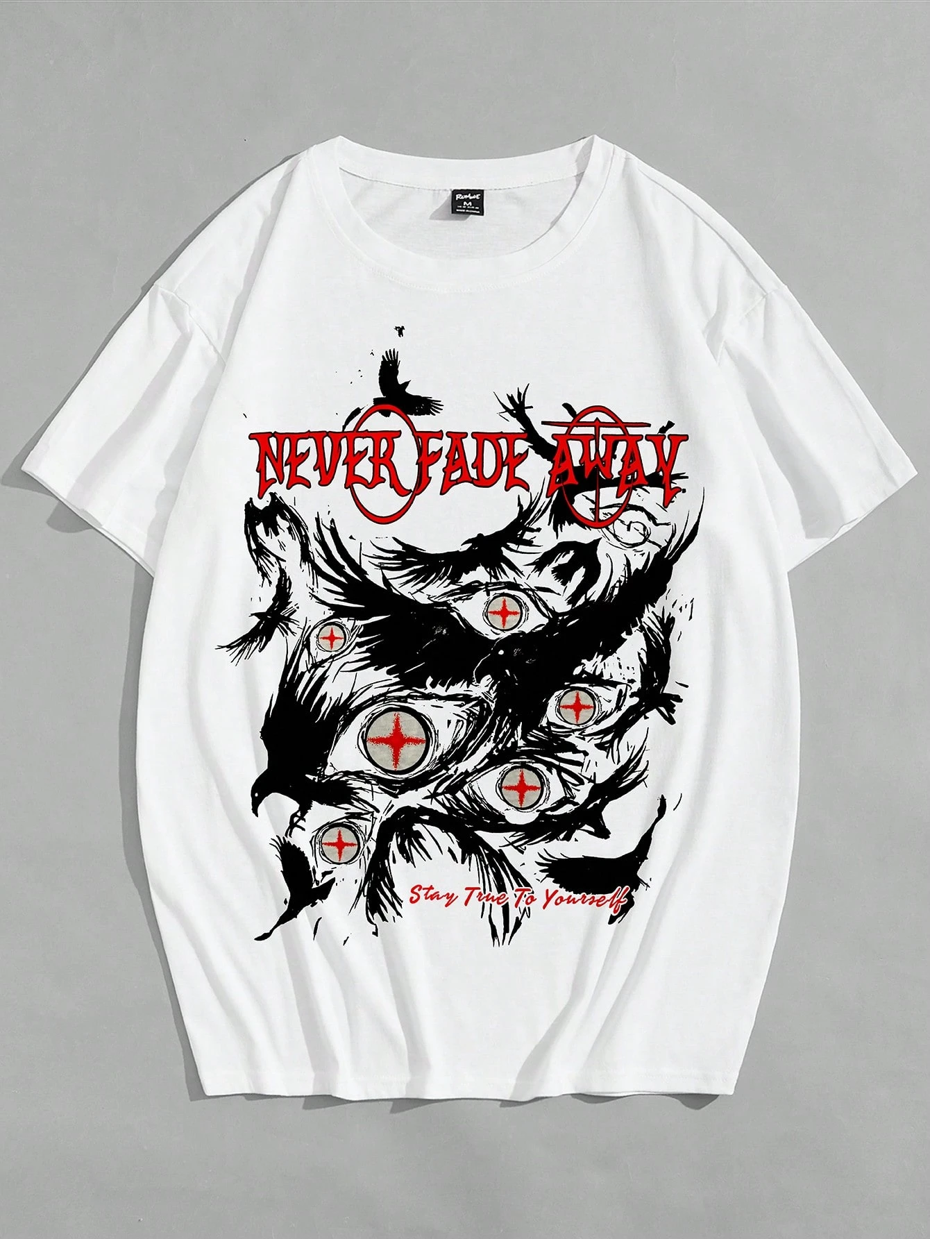 Goth تي شيرت طائر & بطباعة أحرف للشباب