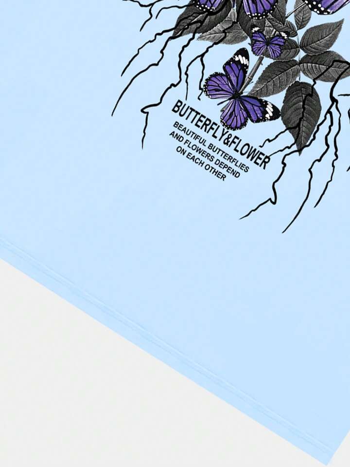 Goth تي شيرت بطباعة الفراشة للشباب