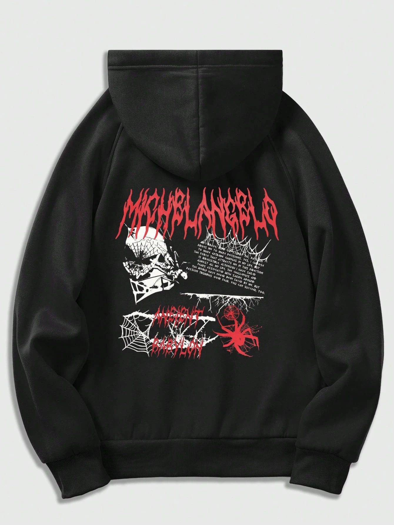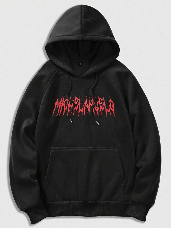 Goth هودي بطباعة أحرف اكمام راجلان رباط للشباب