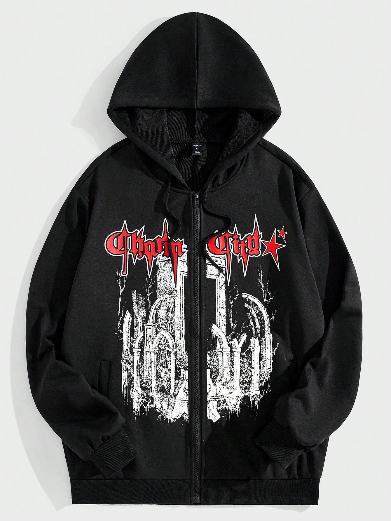 Goth هودي بطباعة أحرف سستة رباط للشباب
