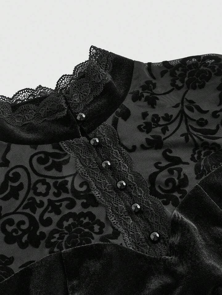 Goth بلوزة نسائية ضيقة الصالح مصنوعة من قماش ساتان مخمل أسود مع تفاصيل من الدانتيل، مناسبة للسهرات والمناسبات الخاصة مثل رأس السنة وعيد الحب