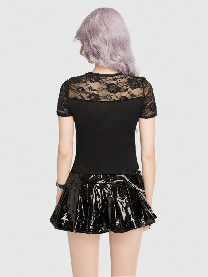 Goth قميص قصير برباط أمامي ورباط تبايني