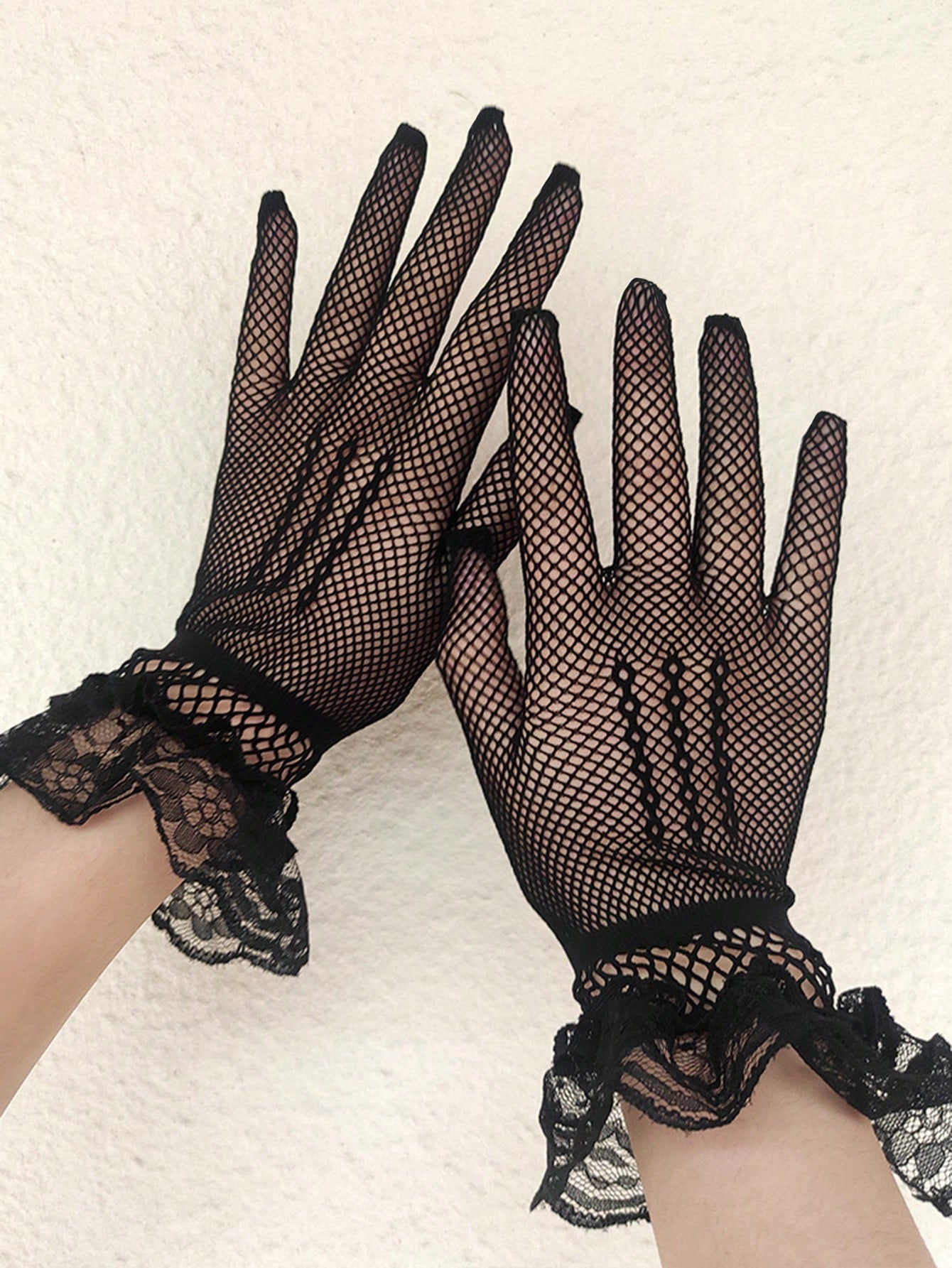 Goth قفازات سيدات دانتيل شبكة صيد مثير