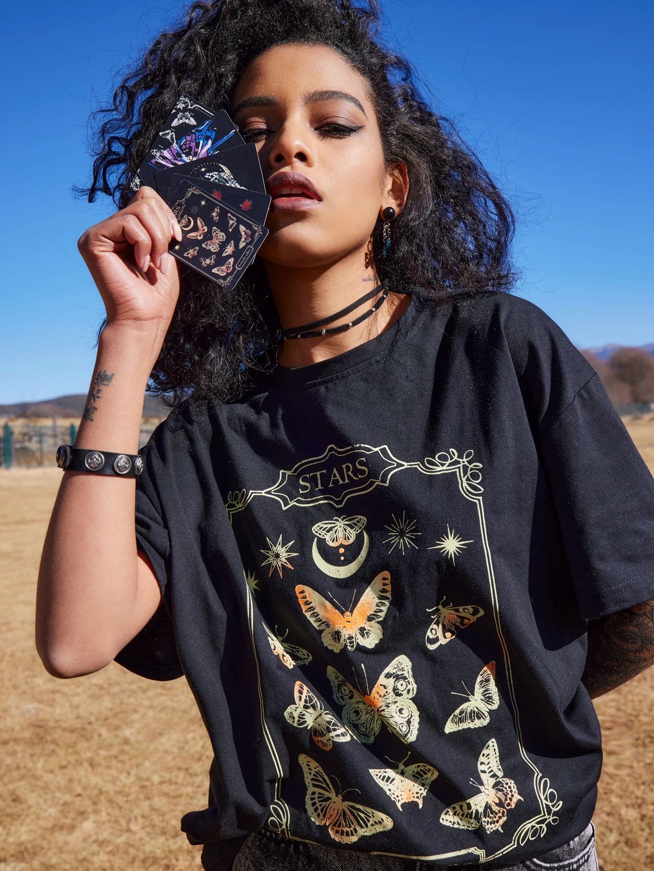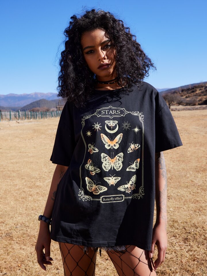 Goth تي شيرت كبير الحجم حرف نمط الفراشة