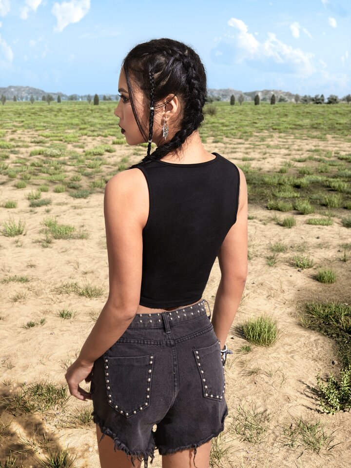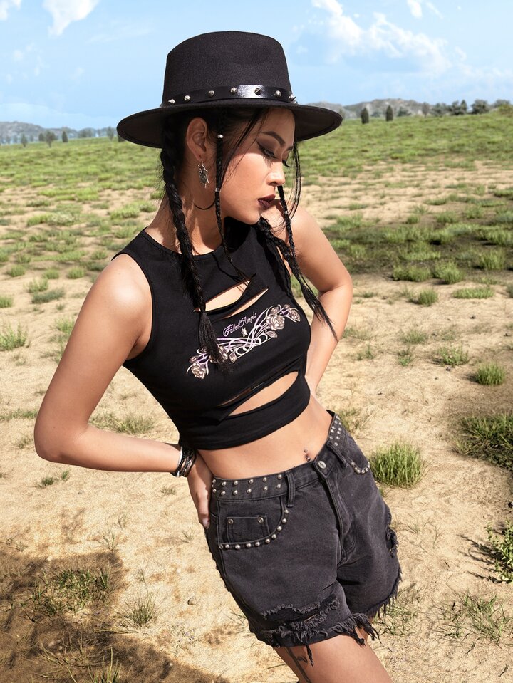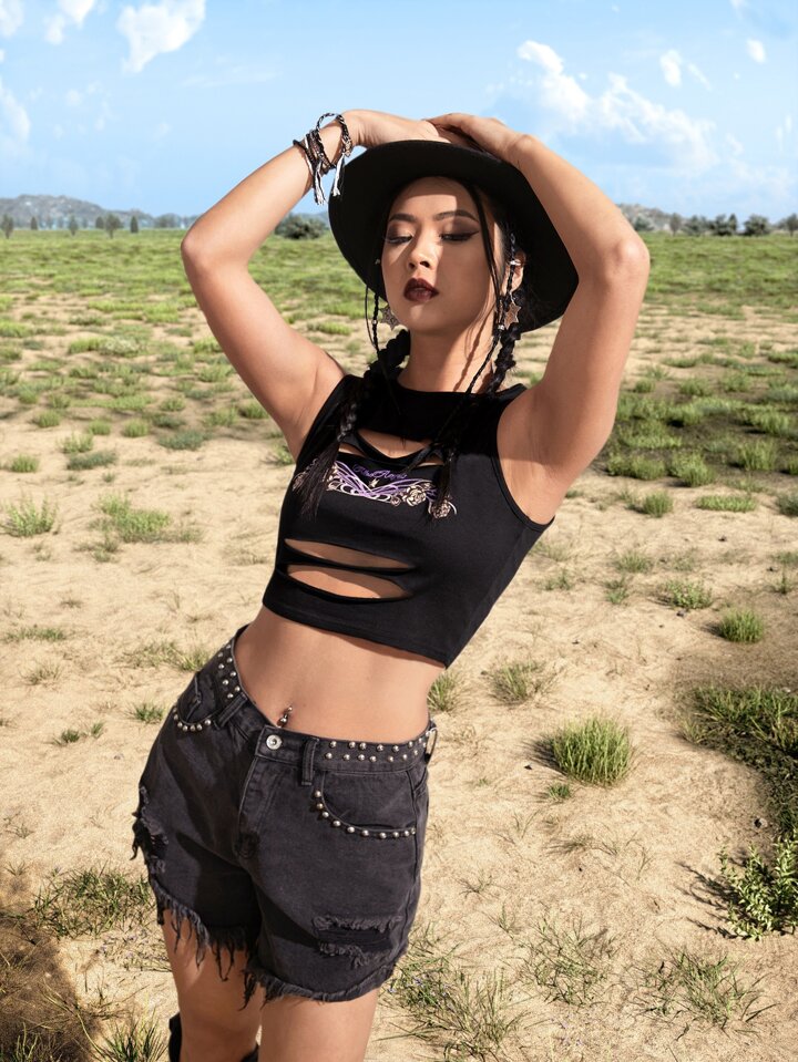 Goth لباس علوي تانك حرف جرافيك زهر ممزق