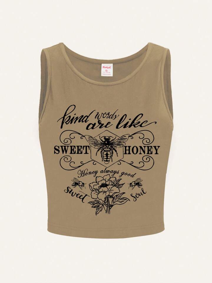 Goth لباس علوي تانك بطباعة أحرف