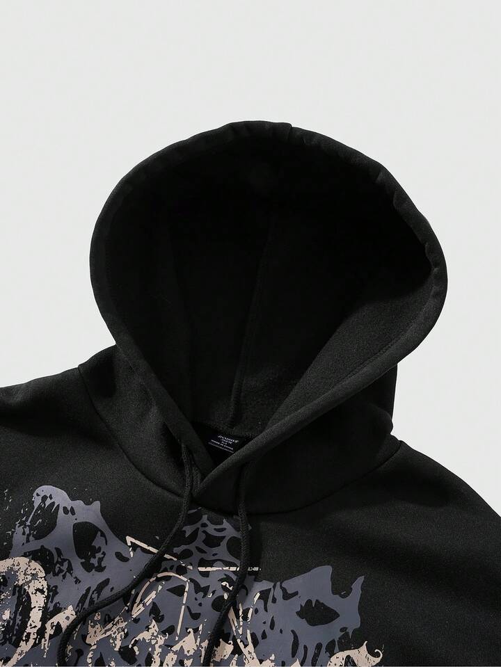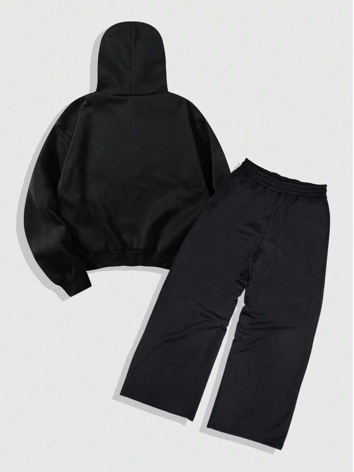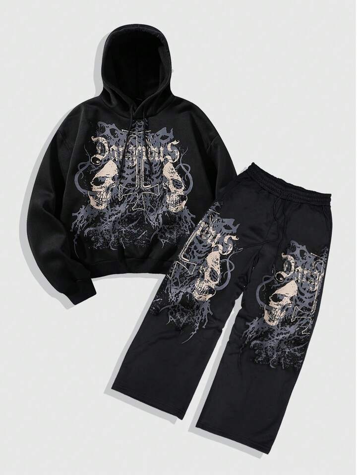 Goth طقم هوديي وبنطلون كاجوال للرجال بسحاب وطبعة جمجمة وصليب، ملابس خريفية