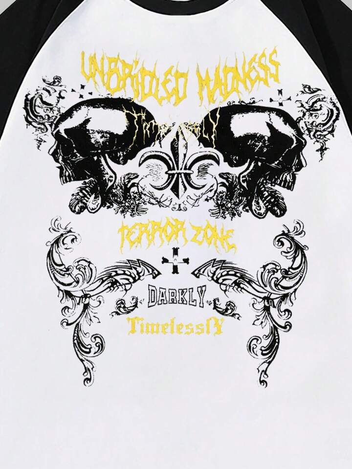 Goth تي شيرت رجالي مطبوع عليه حروف متباينة ملونة الجزء العلوي