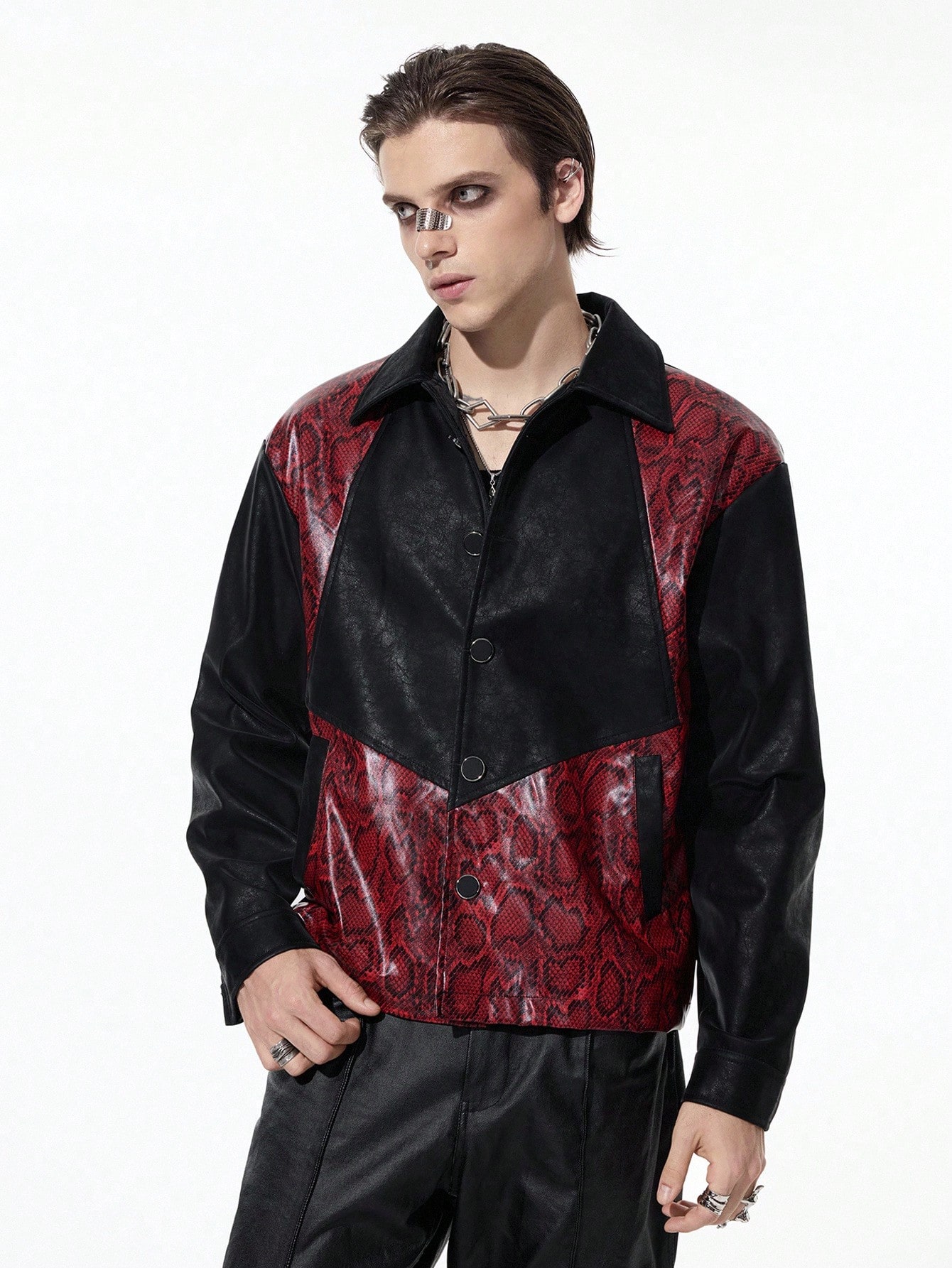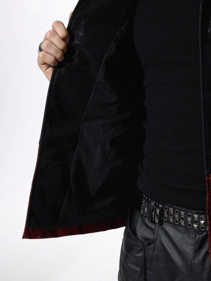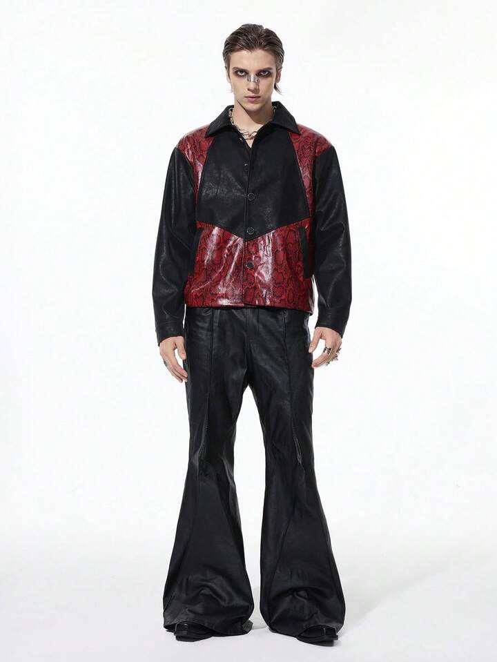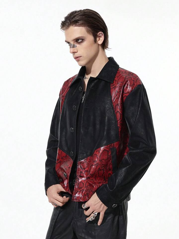 Goth جاكيت جلد طويلة الأكمام بطراز فامبير بتصميم رقعي، للرجال، خريف وشتاء