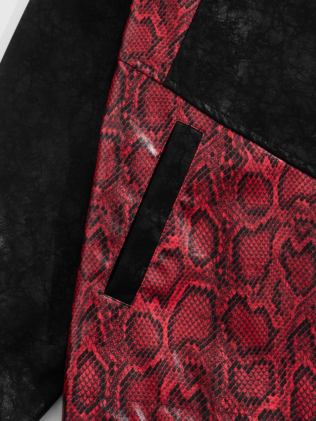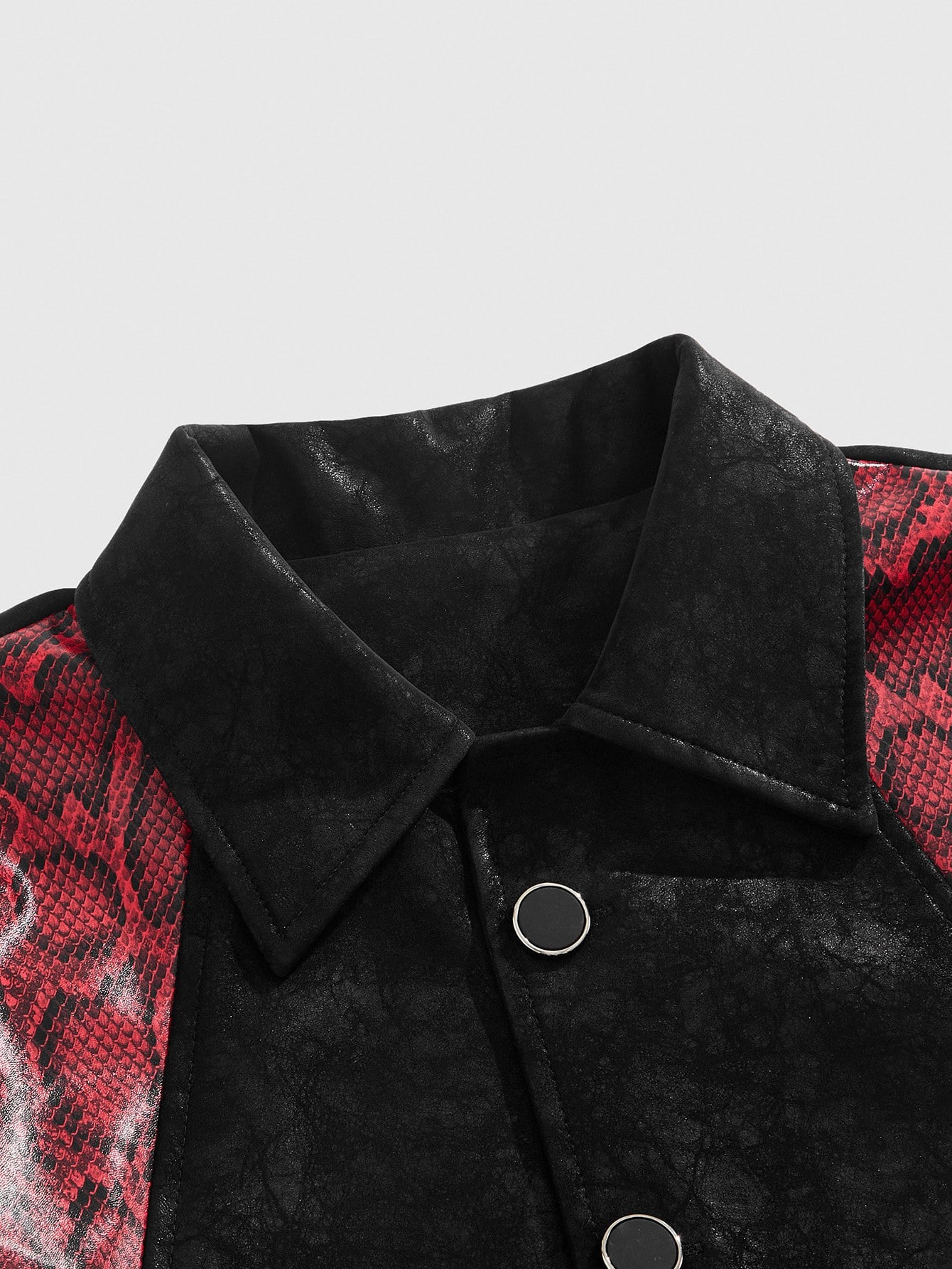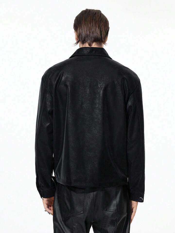 Goth جاكيت جلد طويلة الأكمام بطراز فامبير بتصميم رقعي، للرجال، خريف وشتاء