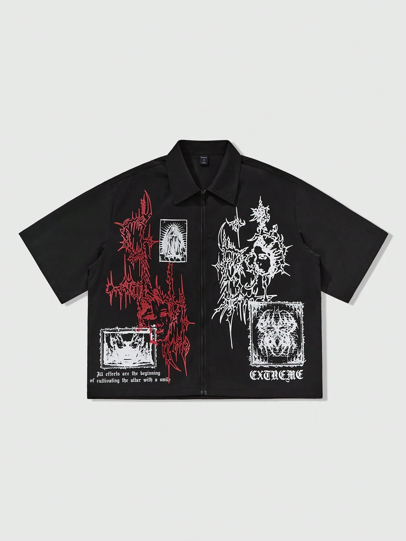 Goth قميص رجالي بأكمام قصيرة مطبوع بطباعة الشارع الأنيقة
