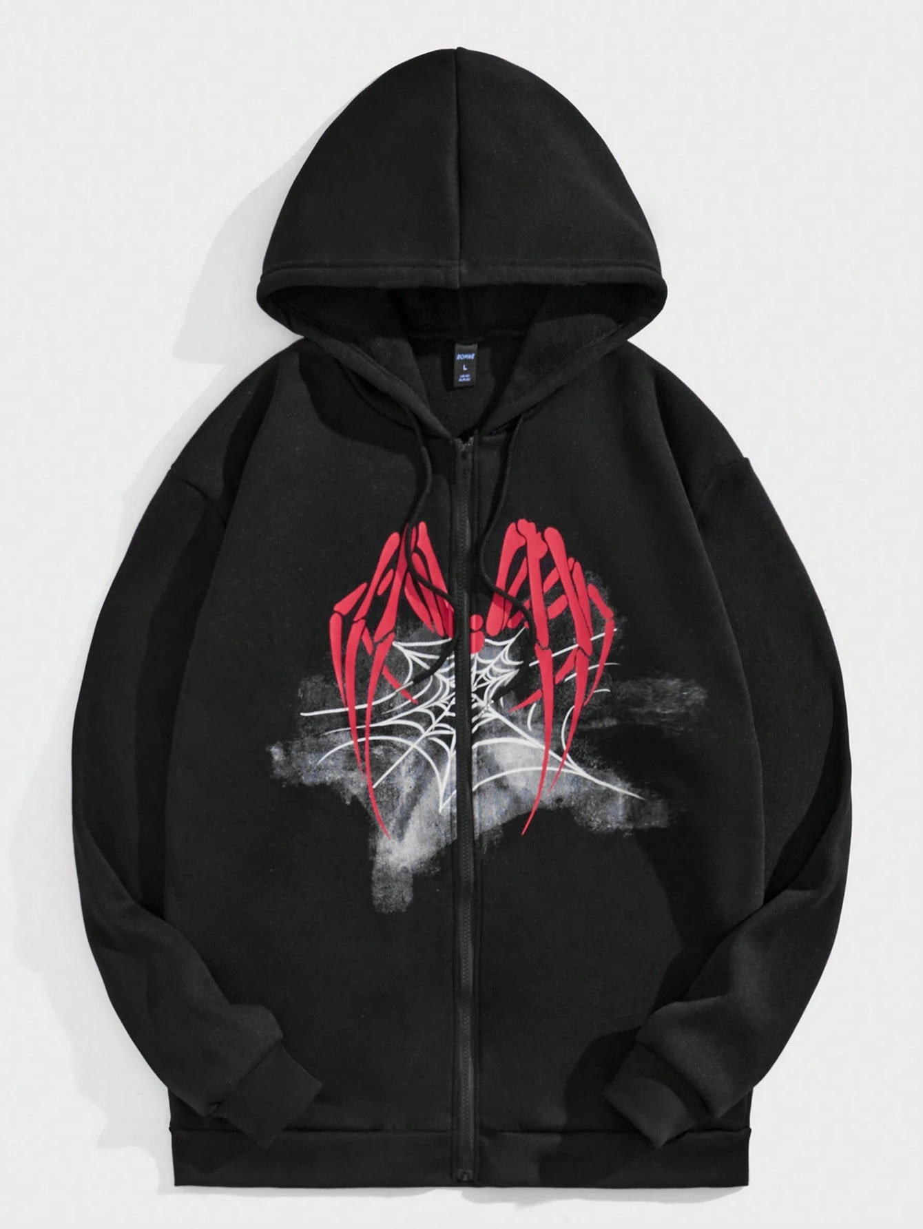 Goth البلوزة الهودي المغطاة بالرباط ذات السحاب وطبعة شبكة العنكبوت للرجال