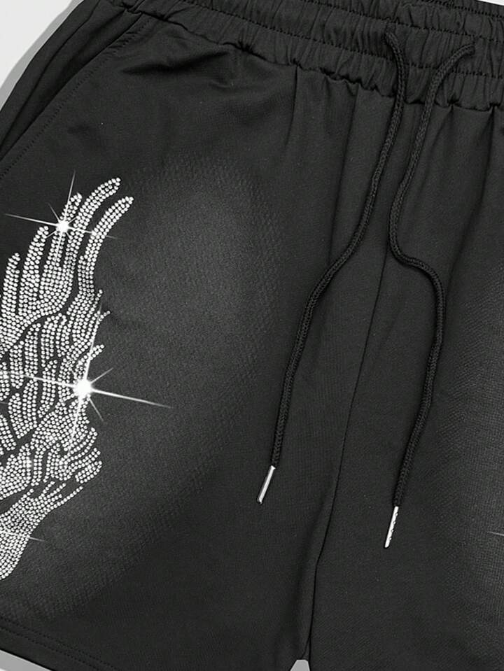 Goth شورتات بنقشات كاجوال صيفية للرجال مرصعة بالراين