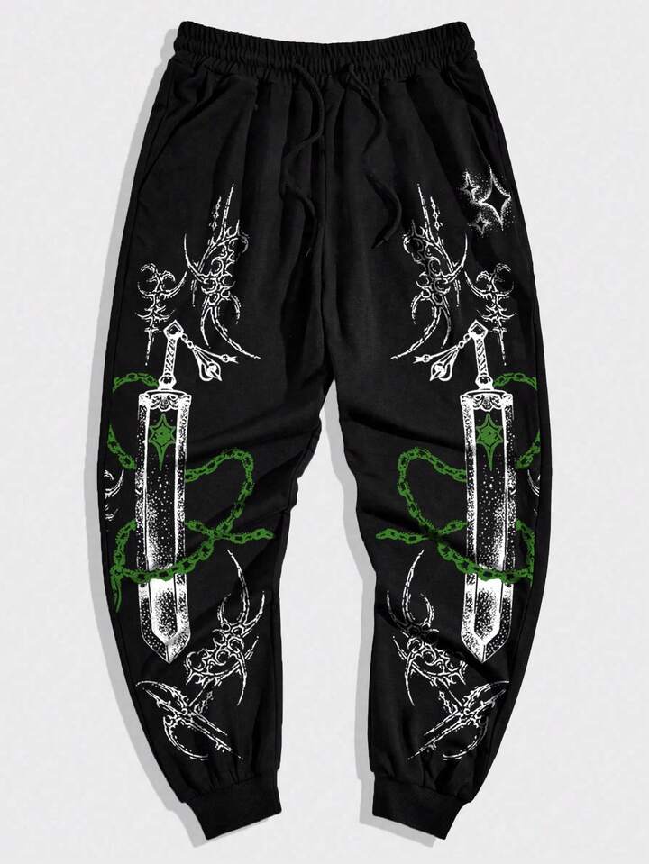 Goth بنطلون جوجر كاجوال بخصر مربوط وجيوب مطبوع عليه أسلحة للرجال