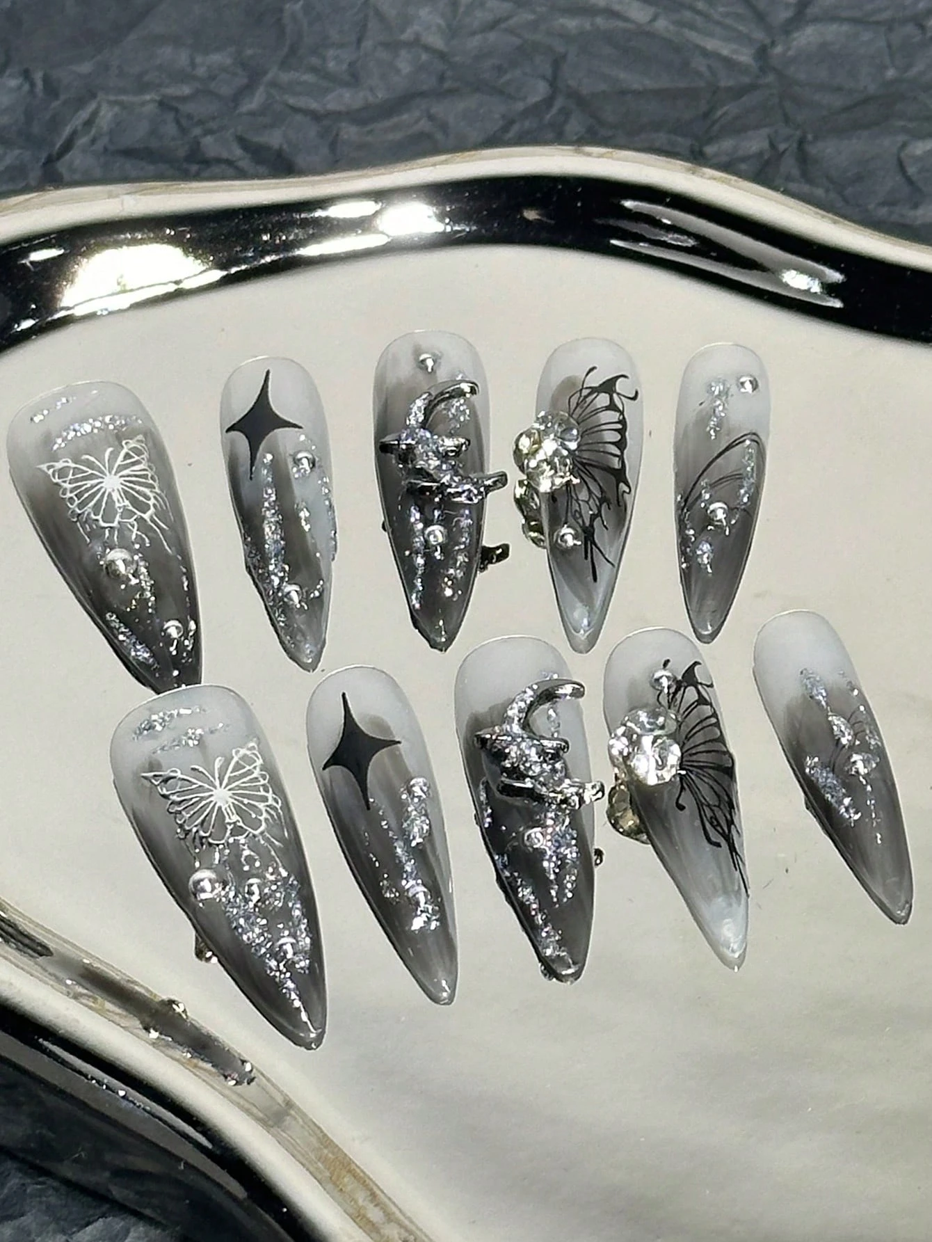 Goth ميدنايت بلوم 10 قطع من الأظافر الصناعية الناعمة بالحجم الكامل مع غراء الجيلي