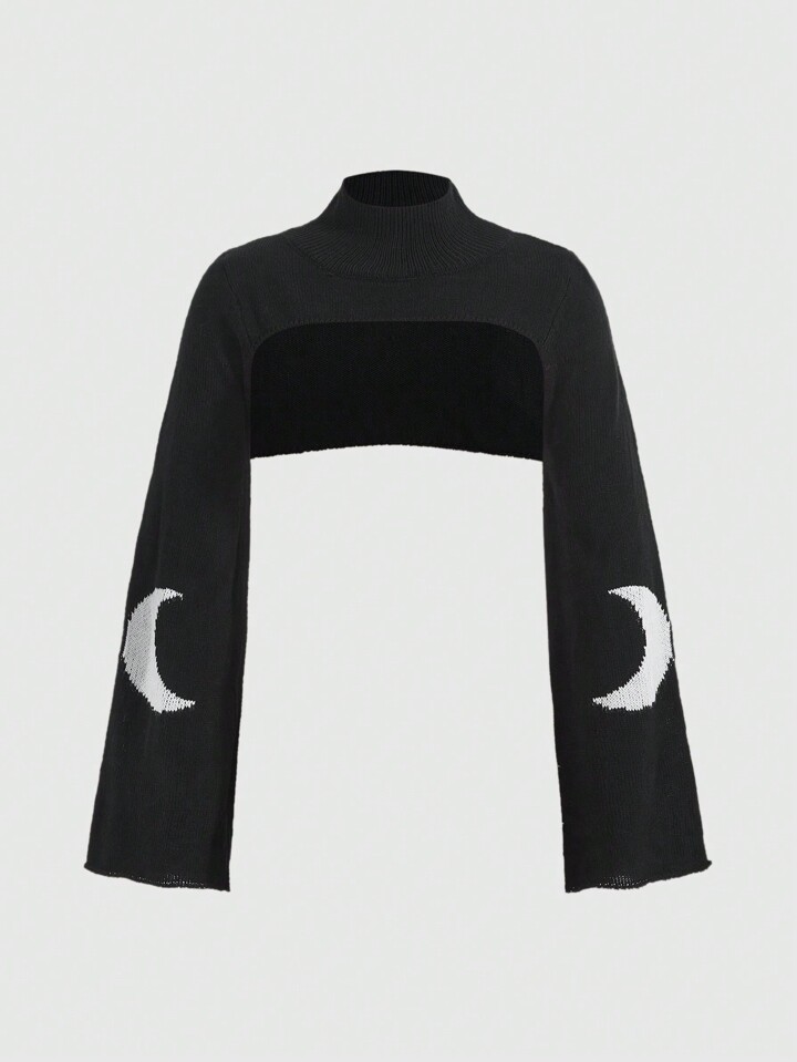 Goth كنزة صوف نمط قمر أكمام جرس قصير سوبر