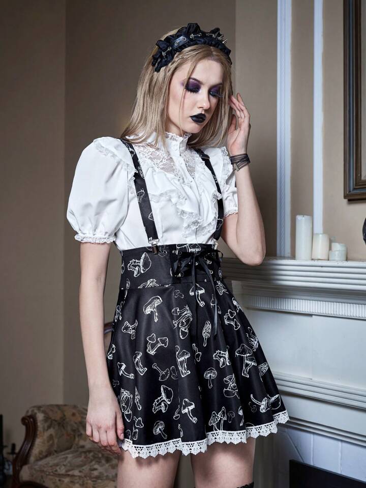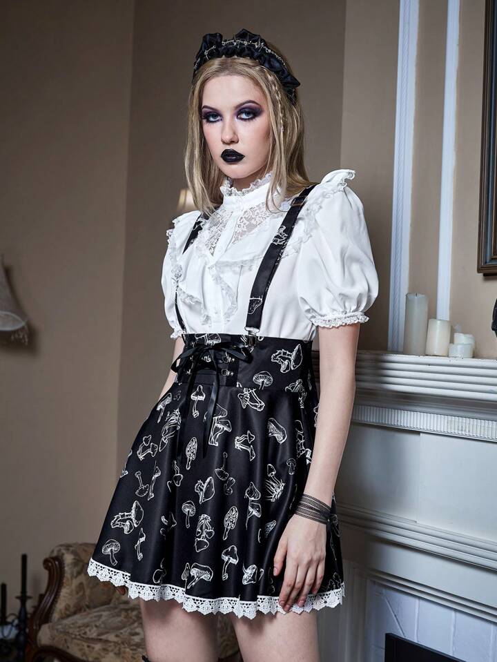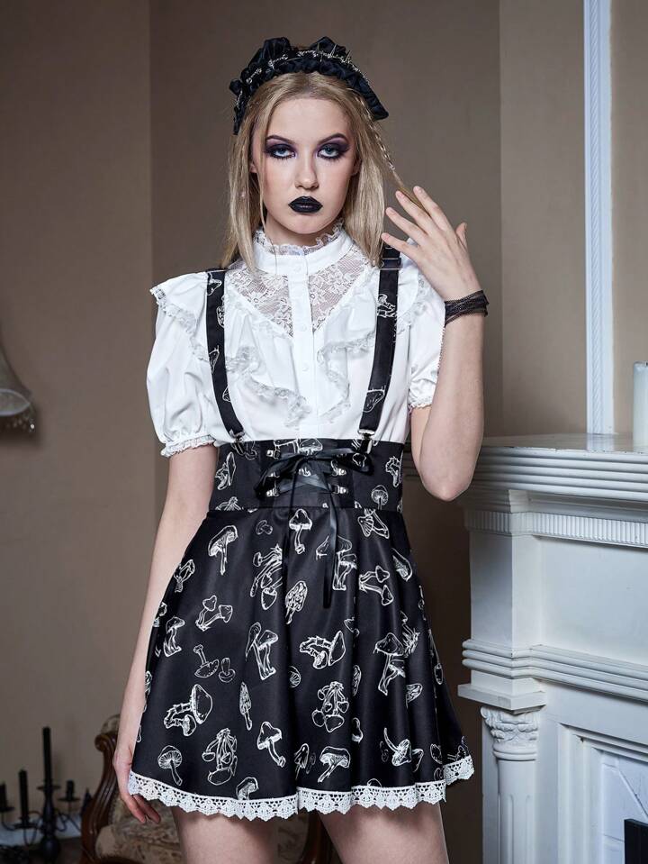 Goth تنورة بينفور بطباعة فطر رباط دانتيل متباين اللون