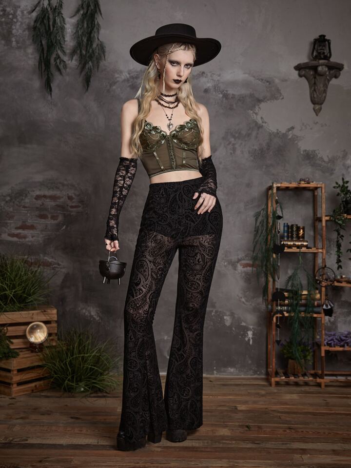 Goth بناطيل نسائية شفاف الدوامة بطباعة شاملة جذابة