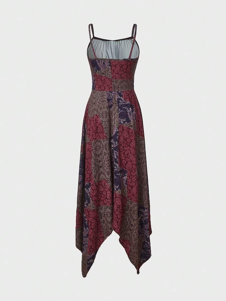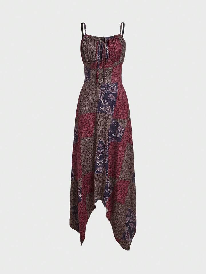 Goth فستان كامي طباعة مختلط ربطة امامية بدون حزام