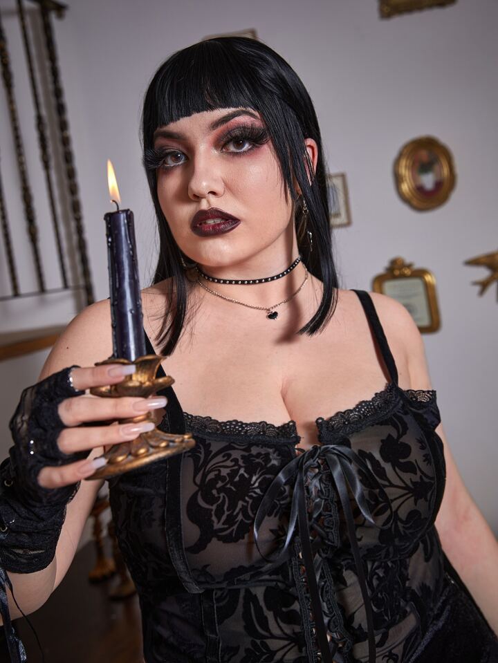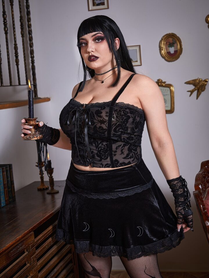 Goth صدرية كامي طباعة الأزهار رباط امامي مقاس كبير