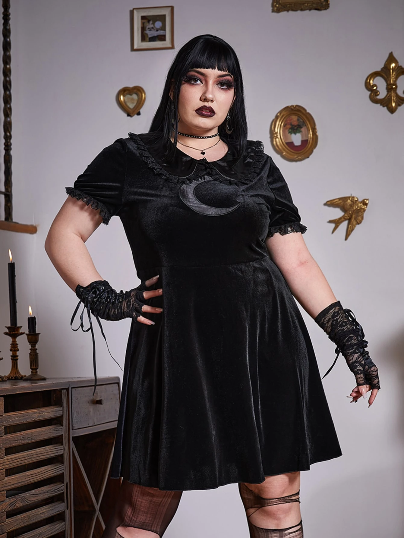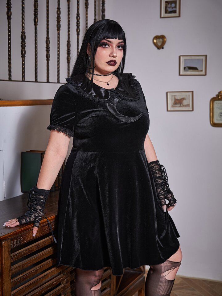 Goth فستان ياقة سحري مخملي بدون قفازات مقاس كبير