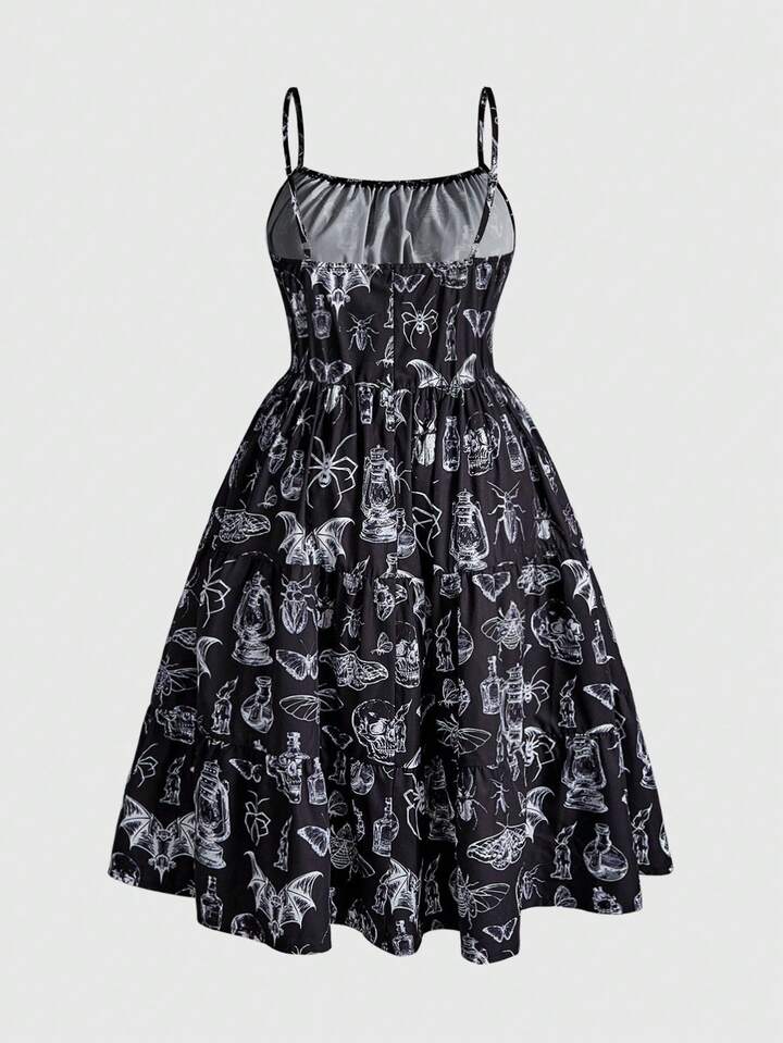 Goth فستان ماكسي مطبوع بالكامل بنمط الجمجمة الداكنة للنساء المقاسات الكبيرة