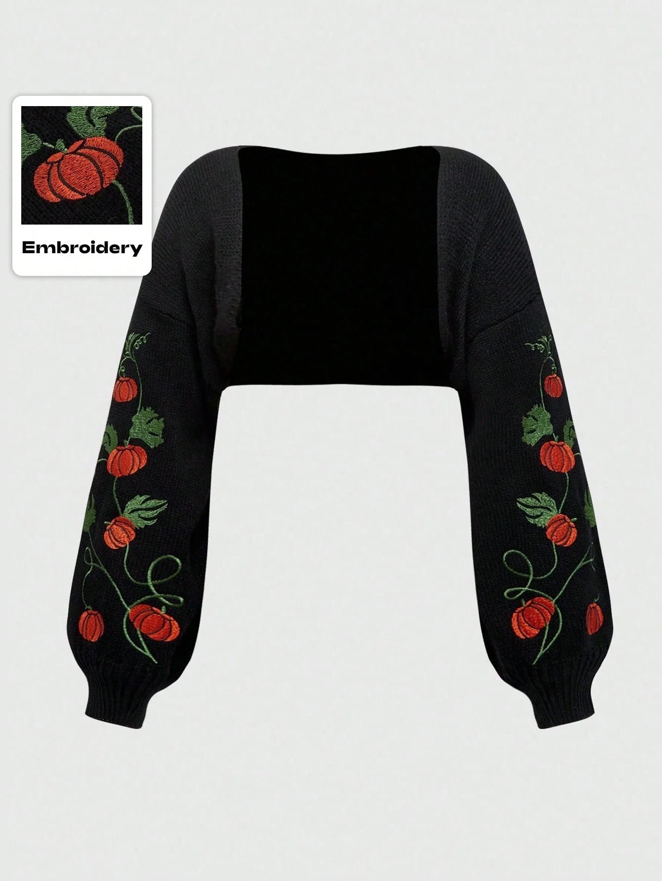Goth معطف قصير مطرز بالقرع والكرمة للنساء ذوات الحجم الكبير، غطاء رقيق للخروج في مناسبة هالوين