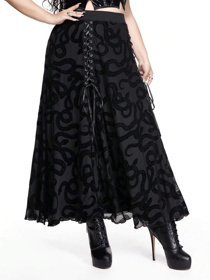 Goth تنورة مطبوعة بطبعة الثعبان مع حزام مقاس كبير للنساء في طراز جوتيك