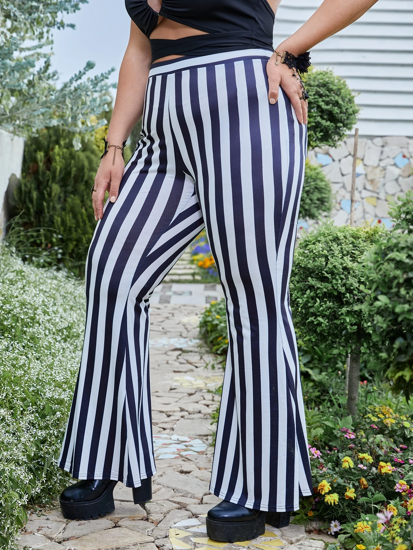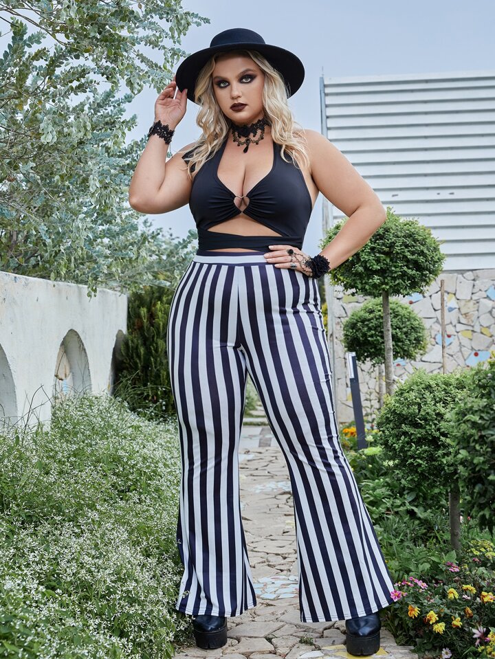 Goth بنطلون بساق واسع طباعة مخطط مقاس كبير
