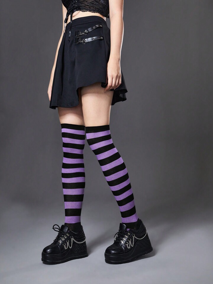 Goth الجوارب الطويله التى تصل للركبه أرجواني & أسود عريض مخطط للنساء