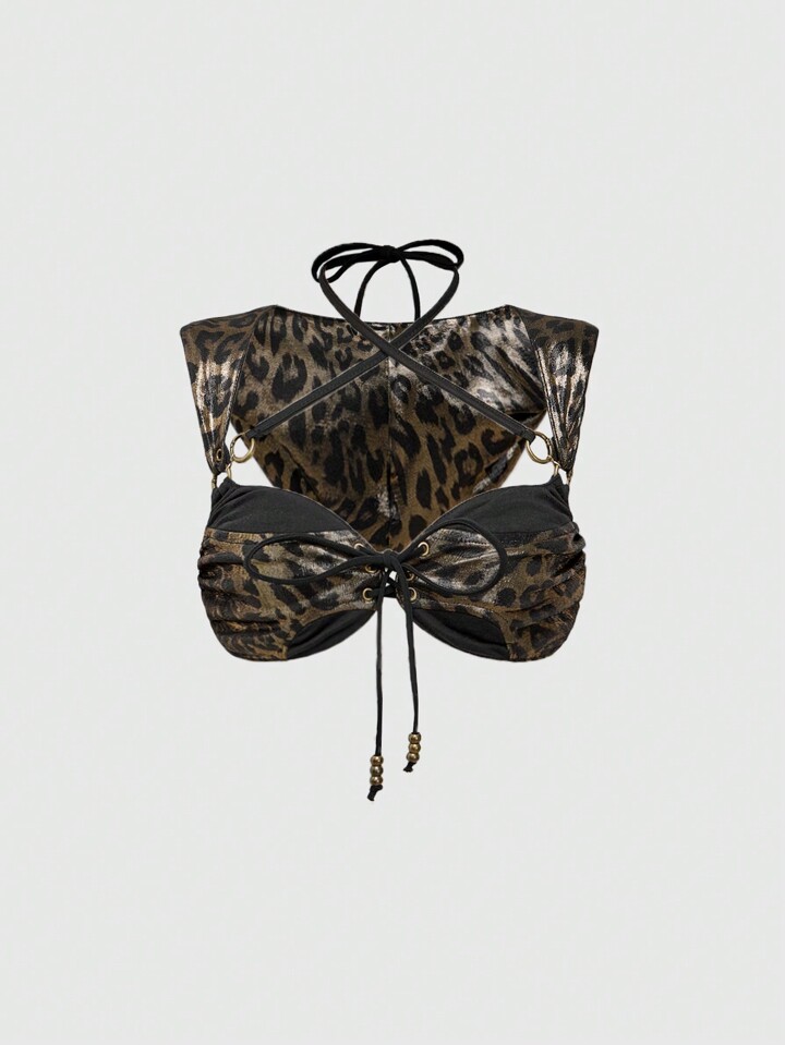 Goth خزان هودي بطبعة نمر معدني ريترو من طراز Y2K