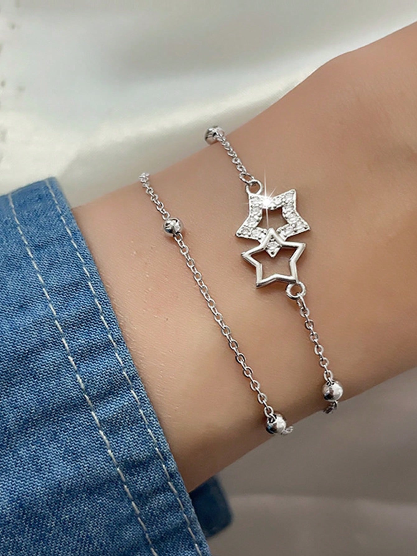 Goth سوار مزدوج الطبقات بسيط ومتعدد الاستخدامات مع سلسلة وتعليقة نجمة