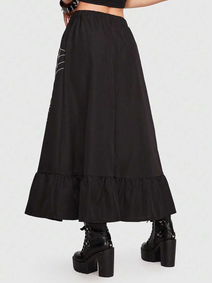 Goth تنورة طباعة شبكة العنكبوت حافة مكشكشة
