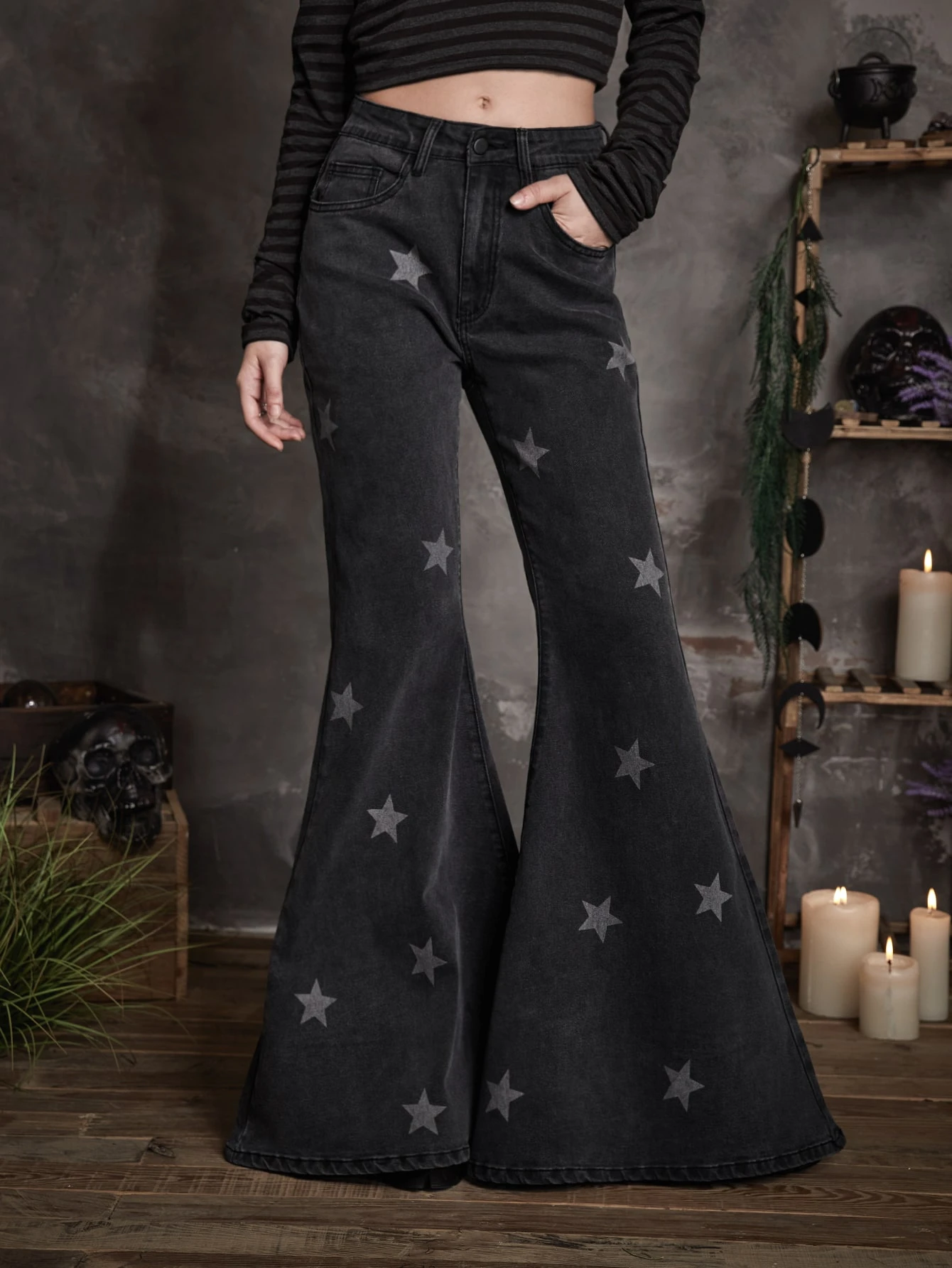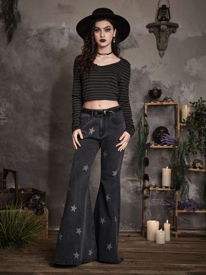 Goth جينز نسائي الزر الجيب سستة تصميم الهندسة