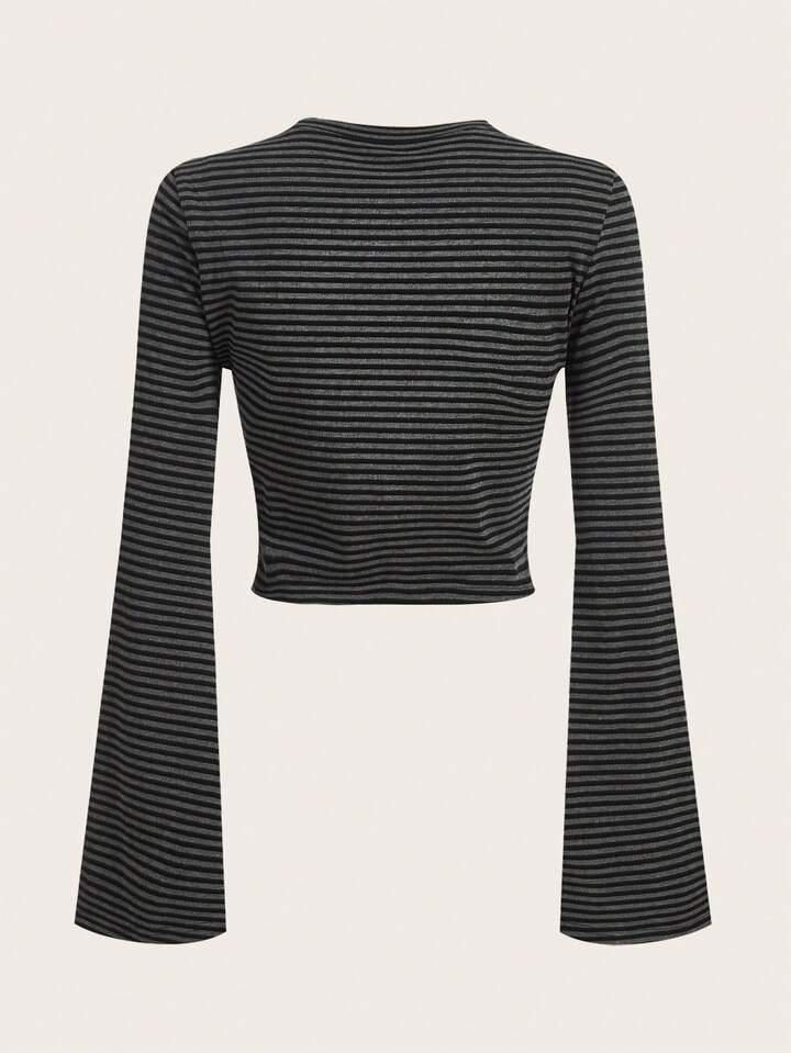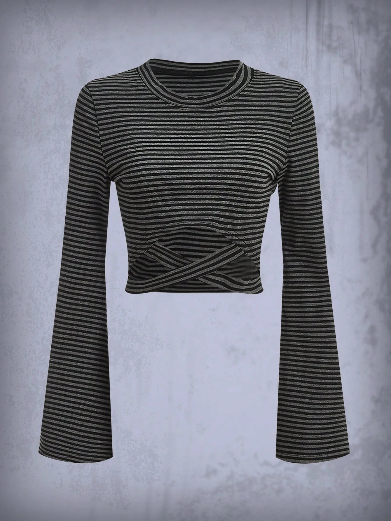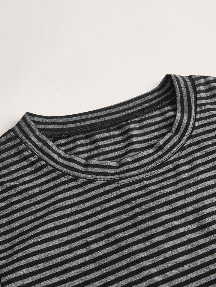 Goth تي شيرت قصير طباعة مخطط أشرطة متقاطعة