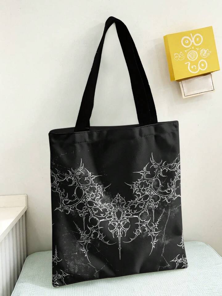 Goth حقيبة كتف، حقيبة ظهر أنيقة قابلة لإعادة الاستخدام، حقيبة يد متعددة الوظائف، حقيبة قماشية مطبوعة، حقيبة كتف بأنماط