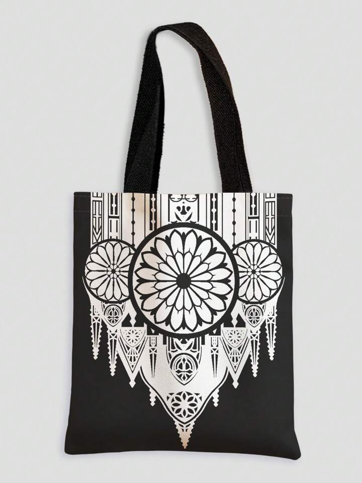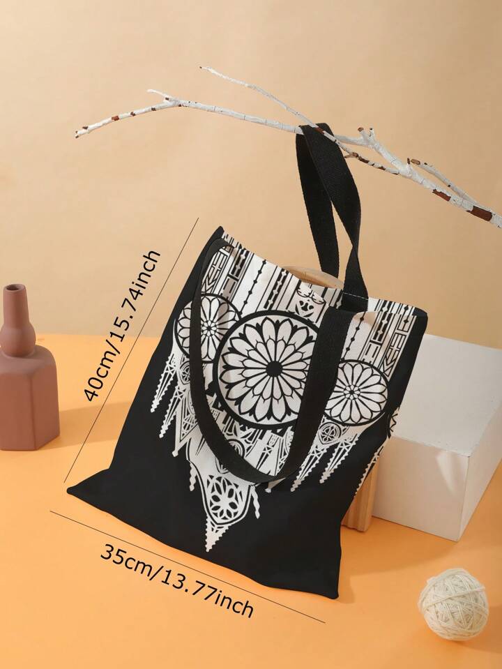 Goth حقيبة كتف كانفاس مطبوعة بطبعتين أحادية اللون الأبيض والأسود