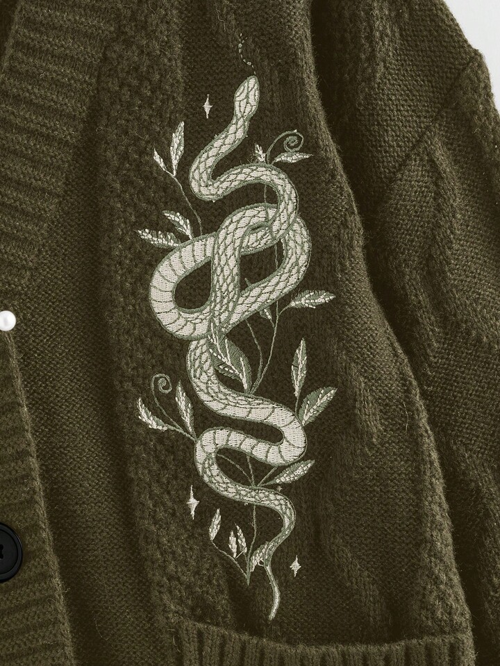 Goth كارديجان نسائي طويل الأكمام جيوب مطرز بزخارف الأزهار والأفاعي أسلوب كاجوال عتيق متعدد الاستخدامات