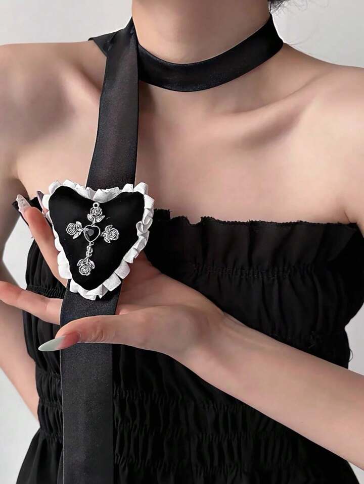 Goth قلادة طويلة قابلة للتعديل بسلسلة مع زهرة وصليب بطراز فينتاج، أنيقة وكلاسيكية