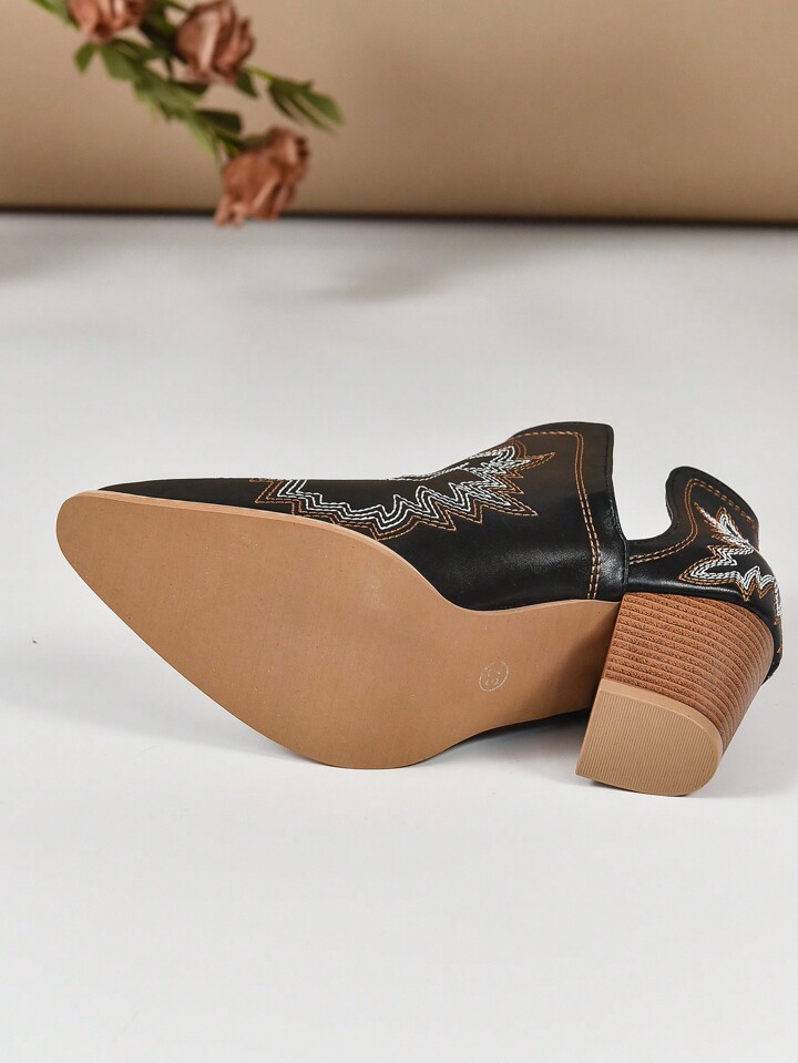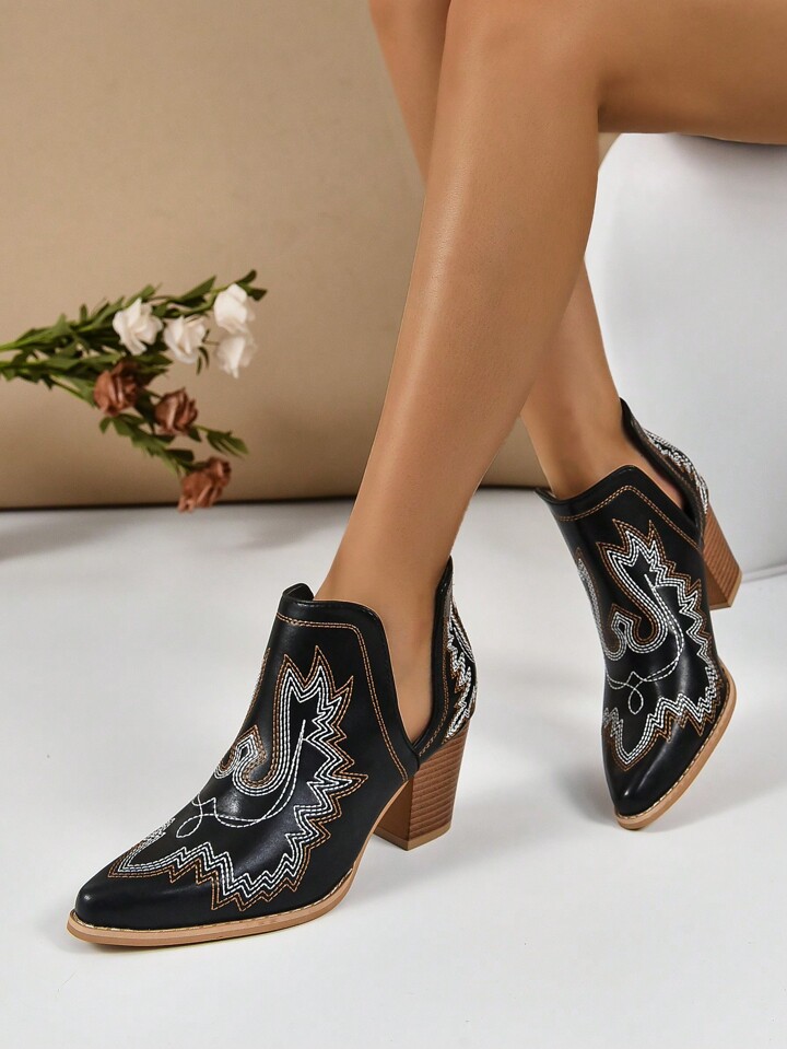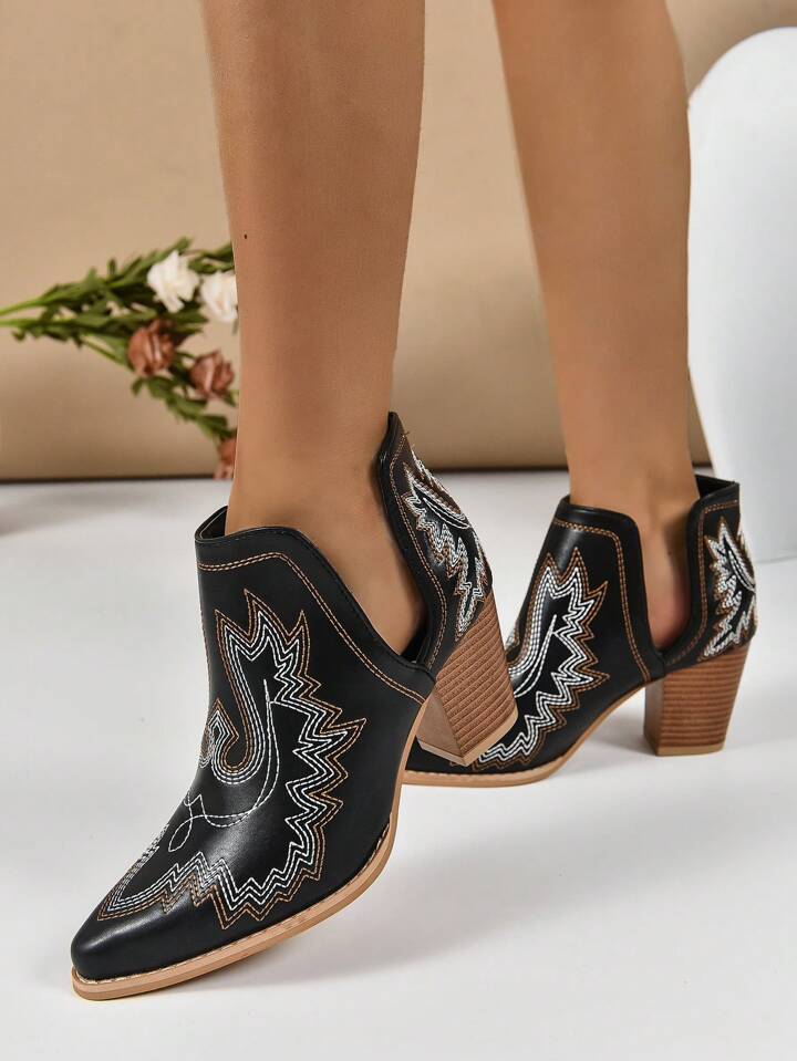 Goth نساء مطرز بأزهار باصابع قدم مدبب حذاء كعب مكتنز جزمة بوت , بوهو خارجي جزمة غيربية