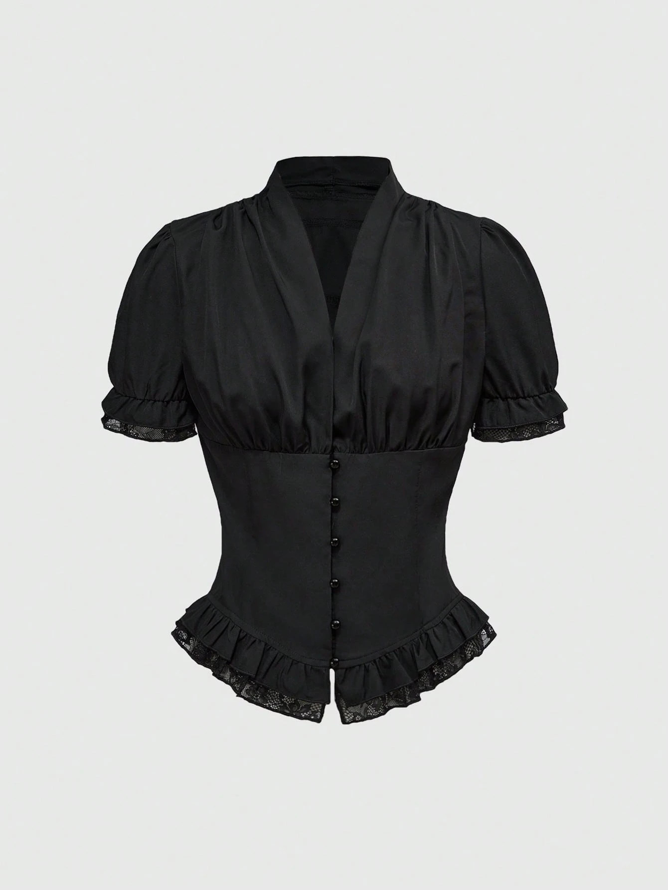 Goth بلوزة كاجوال مكشكشة من التول للنساء، بسيطة وعصرية للارتداء اليومي