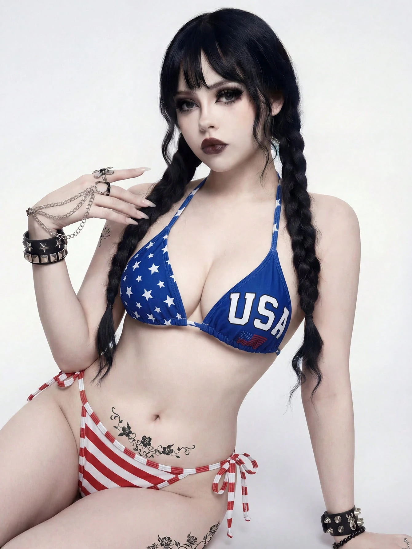Goth بيكيني من قطعتين بطراز عطلة شاطئ عادي للنساء، أنيق بطبعة علم وطني، حمالة عنق، وصول جديد للصيف