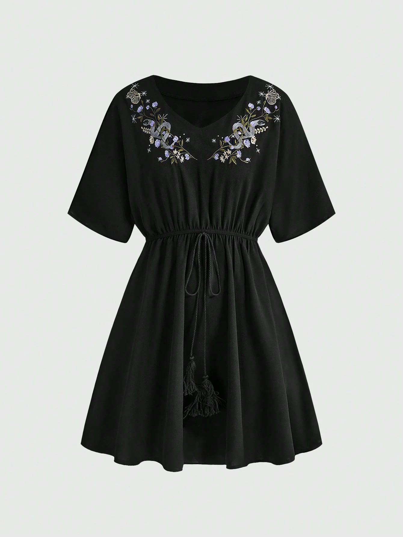 Goth فستان قصير أنيق للسيدات مطرز بأكمام قصيرة وخصر مشدود